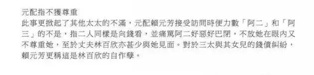 原配赖元芳的祖父是香港大学中文系创办人赖际熙,她本人自然是大家闺秀,与林百欣也算门当户对。