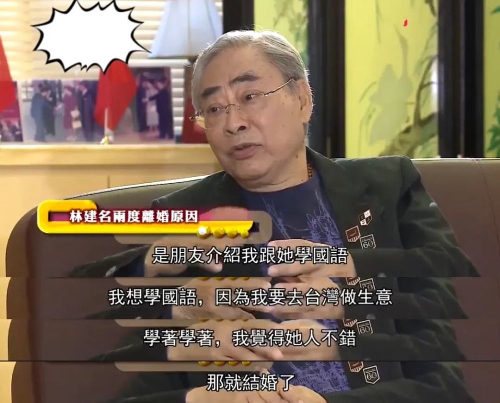 第一段婚姻庄素明,是65年林建名学习中文认识的。但女生不想要孩子,又有别的男人追她,想去试一下。最后不到四年这段婚姻已经玩完,林建名表示离婚后三个月睡不着觉。