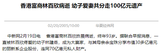05年林百欣去世,林建岳获得遗产超过百亿,成为林氏家族的新一代掌门人。