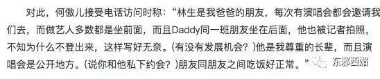 反观林建名,与何傲儿分开,身家地位不受影响,又有源源不断的更年轻的小姑娘成为他的朋友or干女儿。