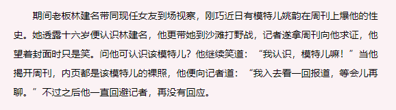 回首林建名这一生,坐拥金钱美人纵横欢场,乐在其中却也闹出诸多荒唐事。风流的见多了,如此不体面的风流还是蛮独一份的,简直是豪门界的一股泥石流。