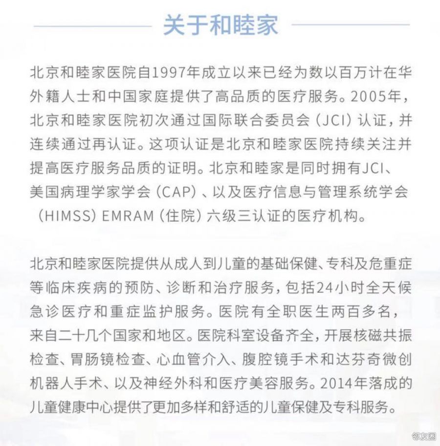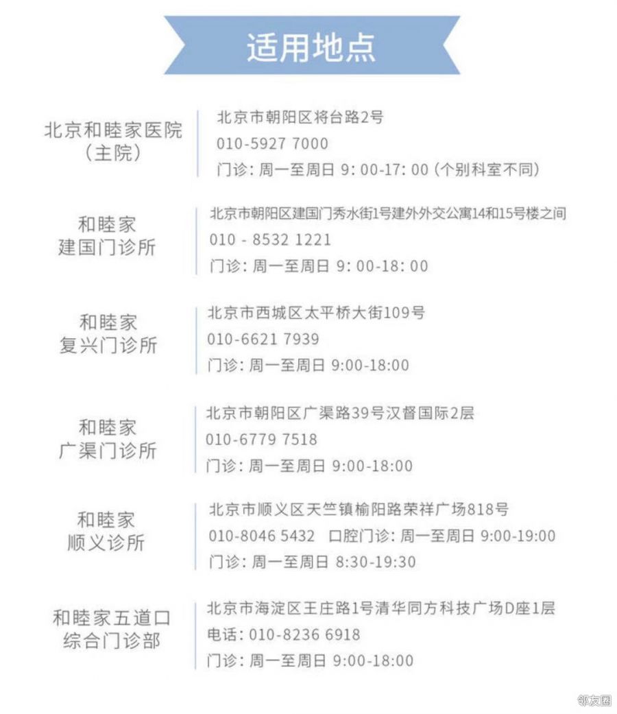 和睦家医院给大家送福利啦