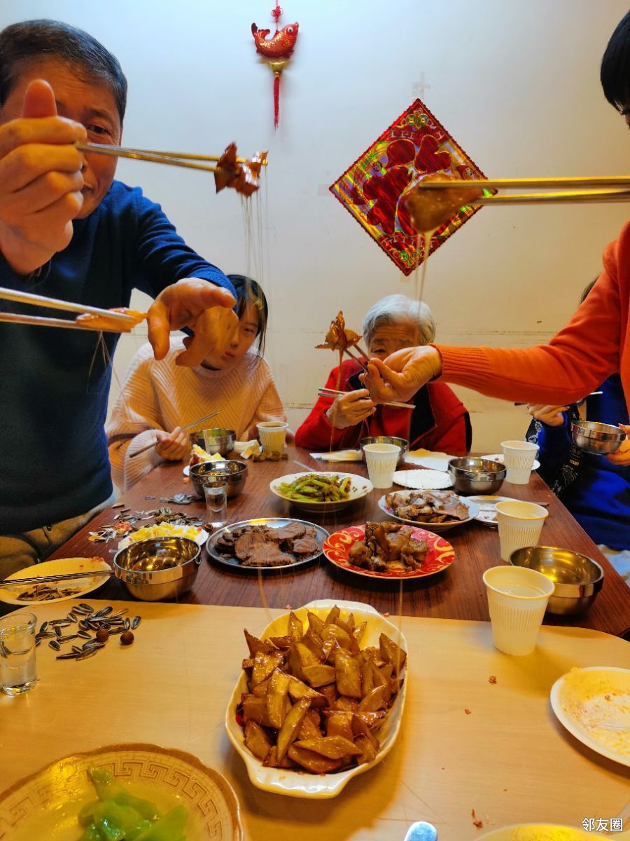 邻友春节快乐!谢谢夸奖!擦丝红薯是大姐做的,