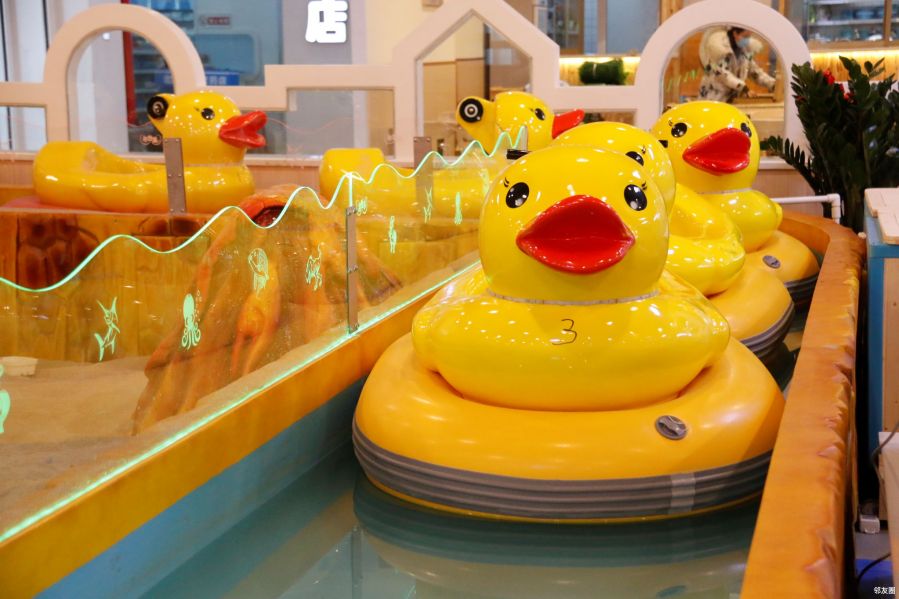 “挖掘”累了的宝宝,可以乘坐小鸭子来一圈漂流“历险记”