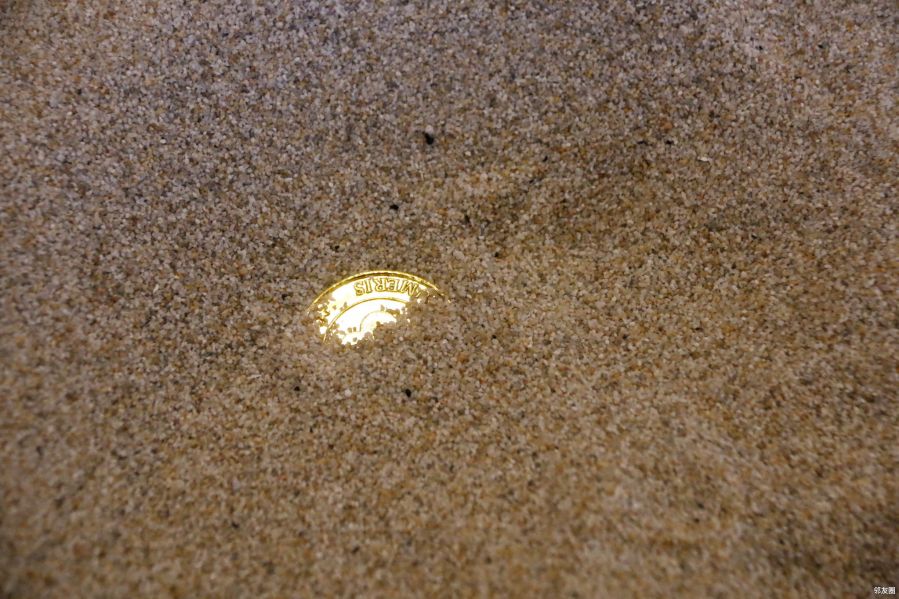 沙坑里除了化石,还藏了“金币”,看的小编我都眼前一亮,居然是“比特币”!按照游戏规则,收集金币是可以换小礼品的哦。
