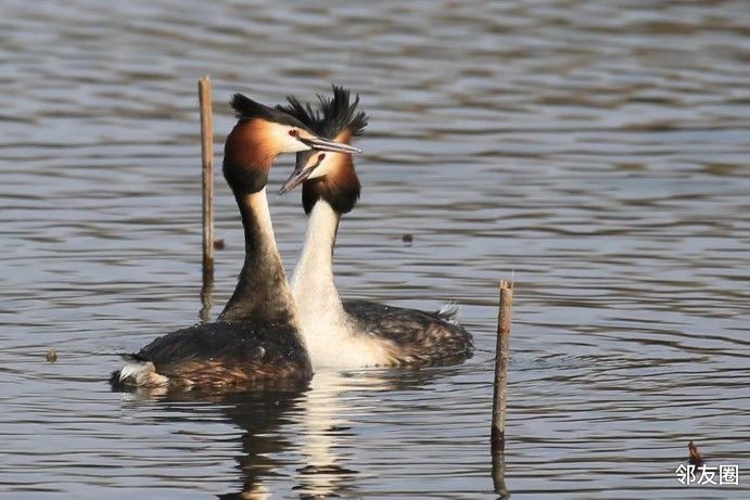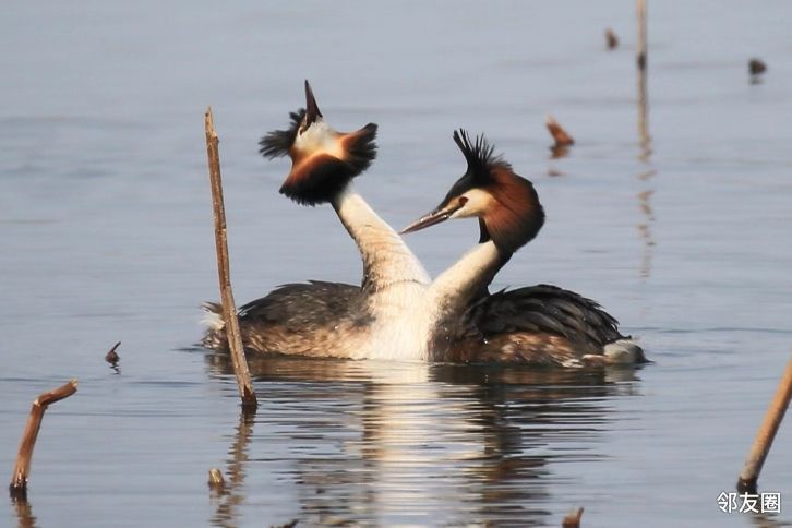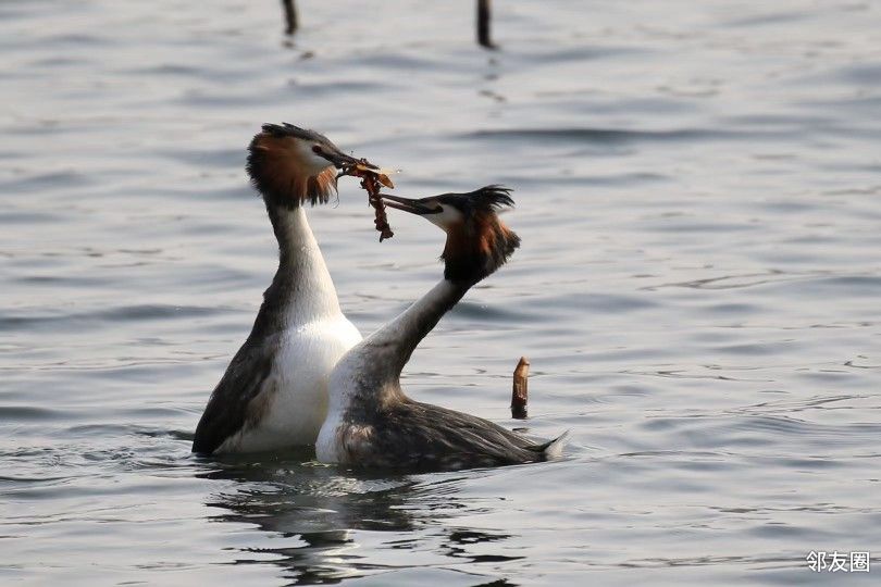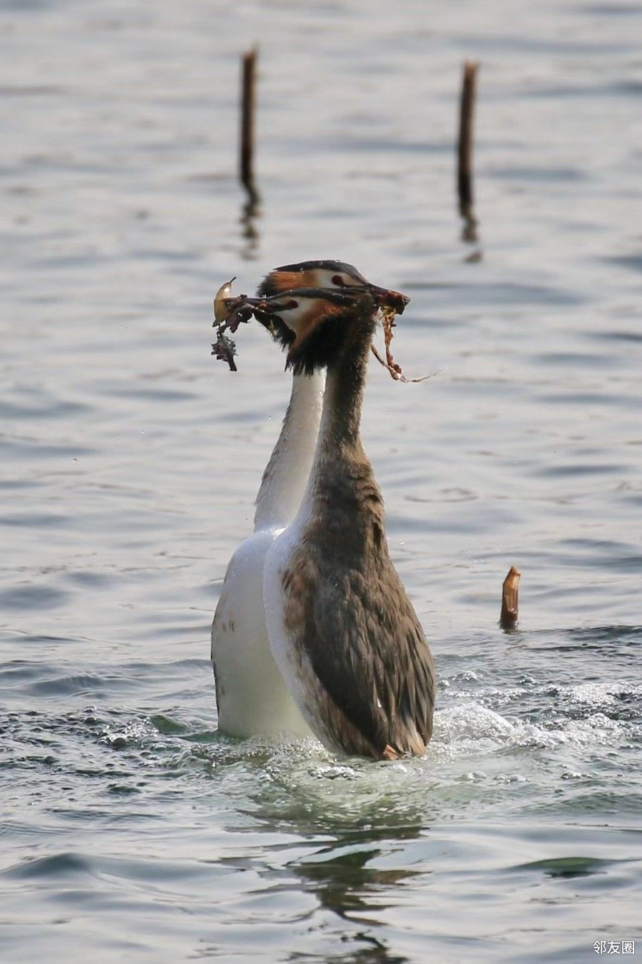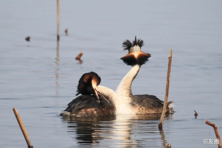 当然凤头鸊鹈“爱的舞蹈”也有不俗的表现。它们表达爱情的样子像极了十五世纪欧洲宫廷舞蹈,你一个鞠躬我回应一个舞姿,一板一眼优美的养眼,令拍客们赞叹不已。当当然还有几只大雁几十只白天鹅的光临,更当然还有姐妹们的欢声笑语陪伴