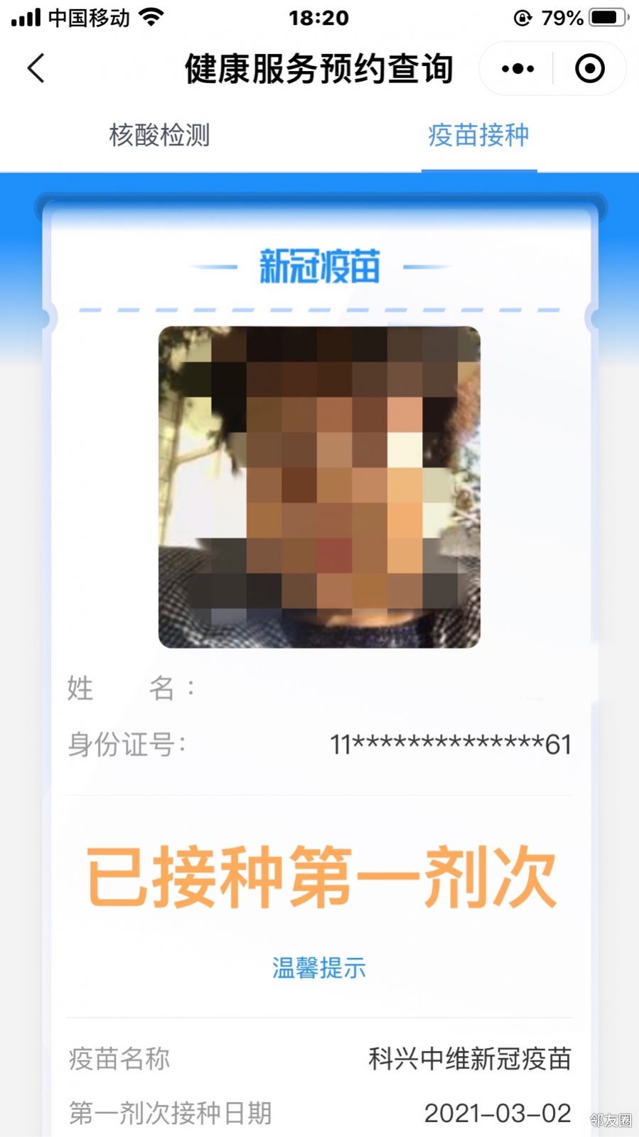 今天打了第一针疫苗,科兴中维的,您是哪家的?