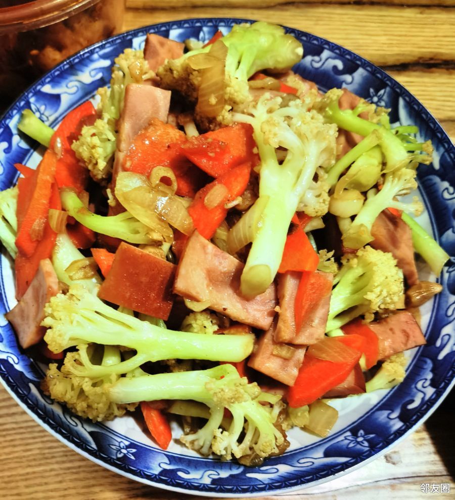 火腿胡萝卜红白有机菜花