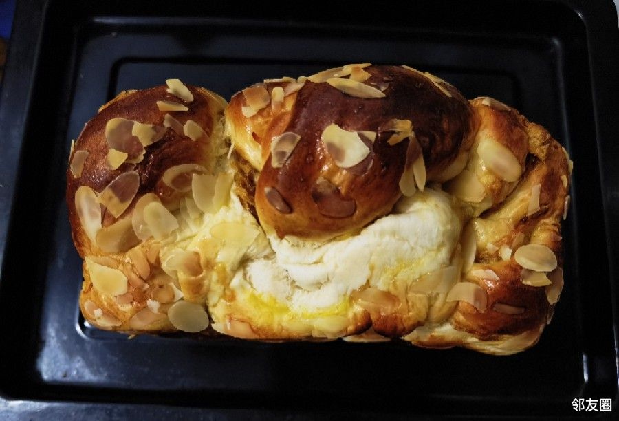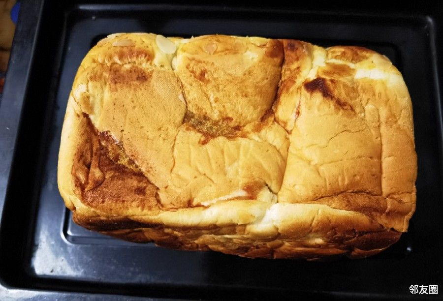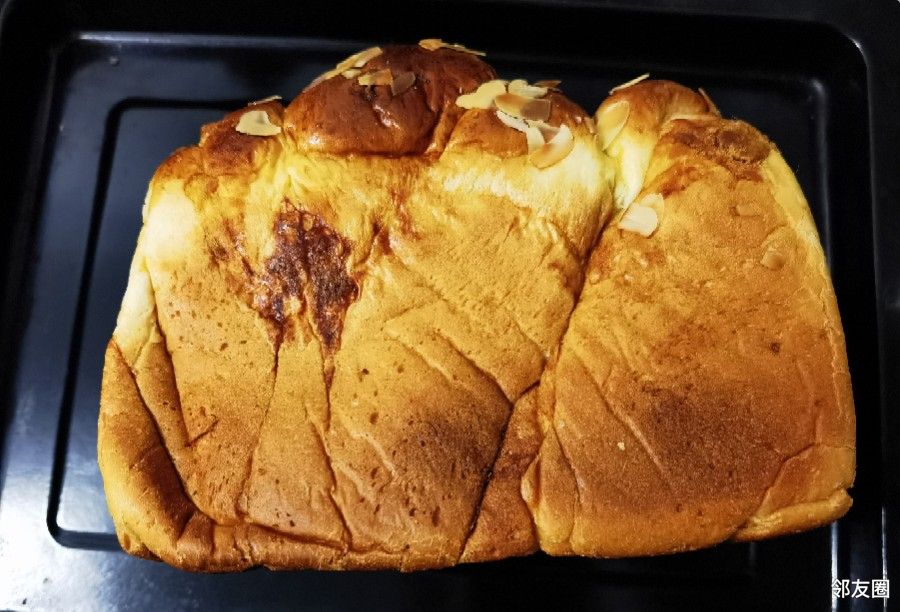 朋友头天晚上亲自给做了个肉松土司面包,不过背包里给挤的不好看了,但口感超级好,绝对不亚于外面卖的 ...