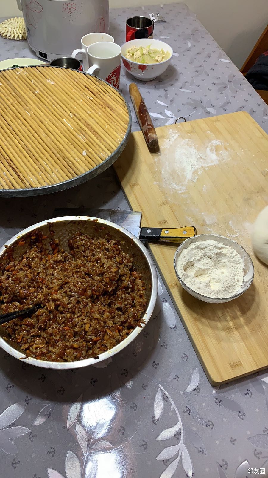 从这篇文章里学习调肉馅,料理机打出葱姜水,调出来的肉馅特别好吃😋;买了糯米,大火蒸40分钟;再加点儿香菇🍄胡萝卜丁🥕,哇,超级无敌好吃😋,儿子说了,🆚买的还好吃,妈妈👩真棒👍
