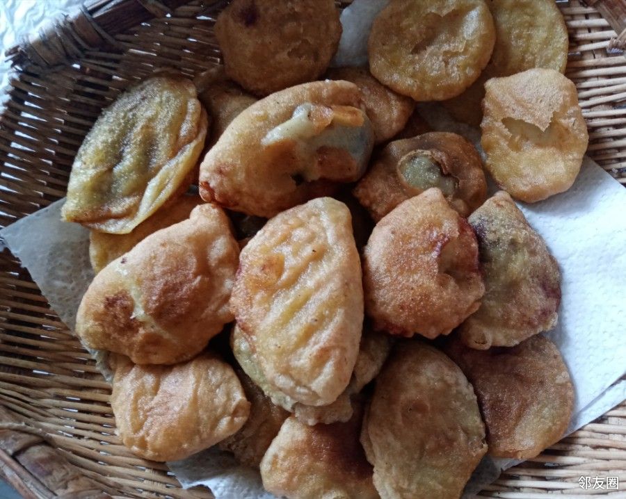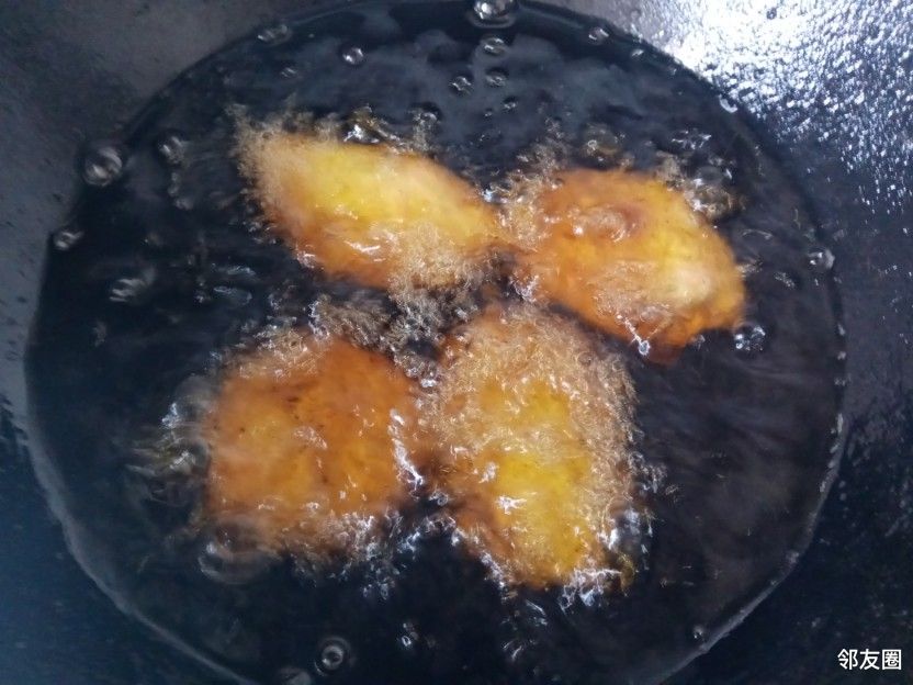 #食不可挡#周末家里炸的黄米糕豆沙馅