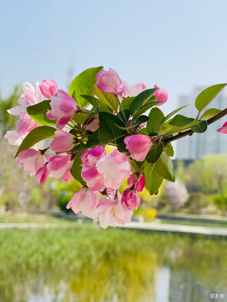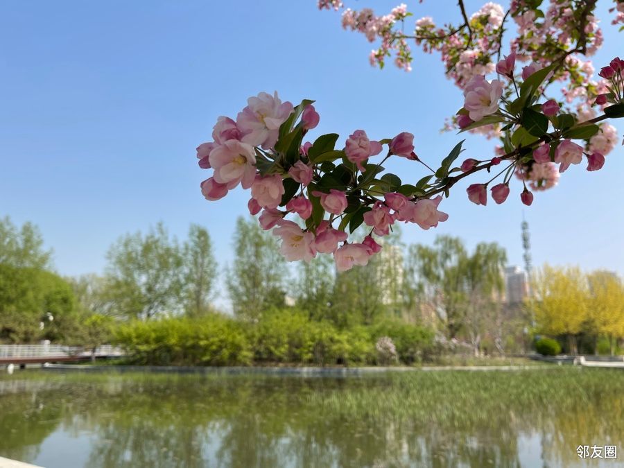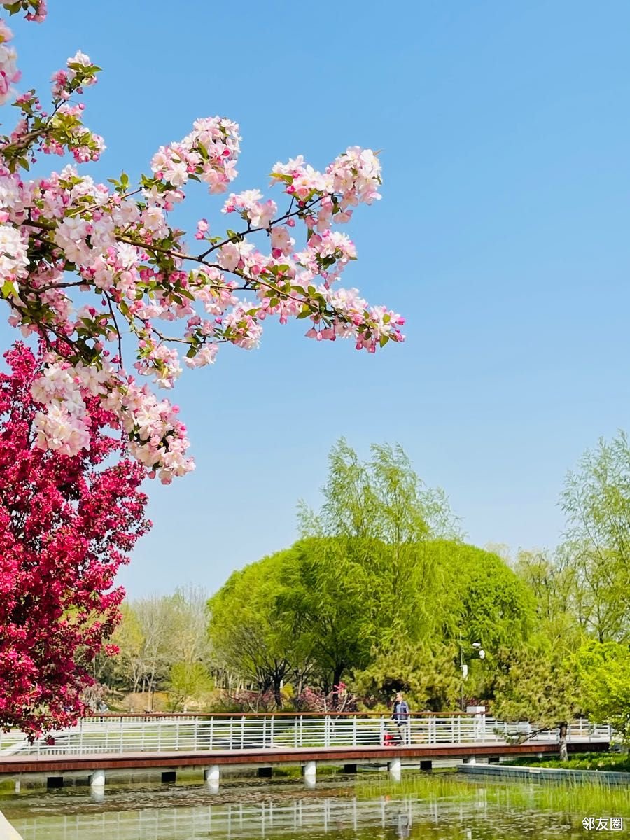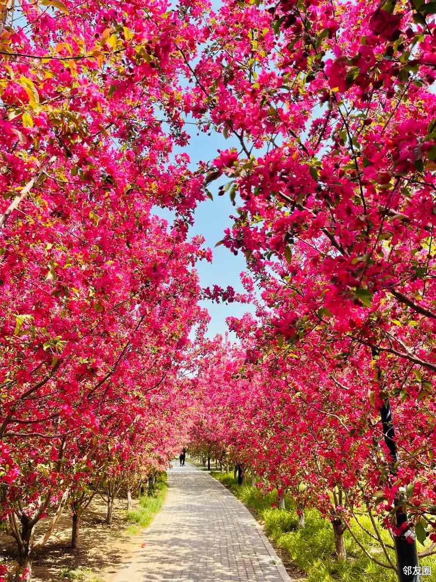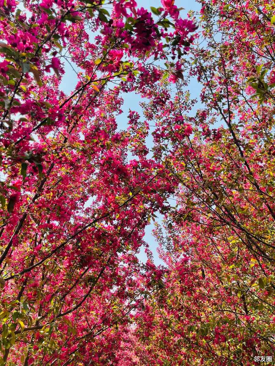 望和公园金丝海棠开了,两侧花相时形成一个华盖,太漂亮了。望京公园内花色不一,百花争艳。