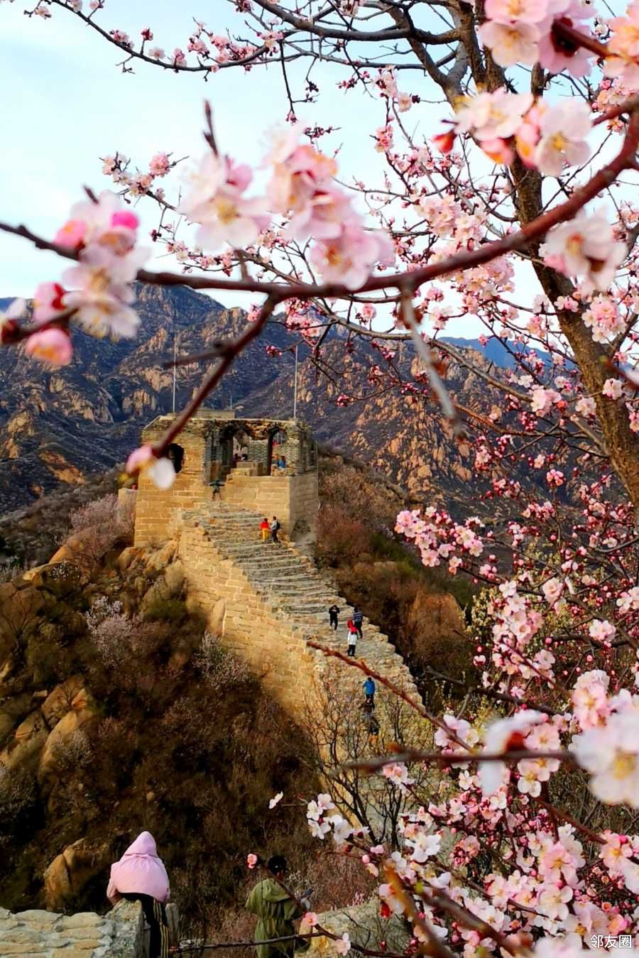 长城脚下,桃花映满山;昌赤路畔,春色悅心间 by@