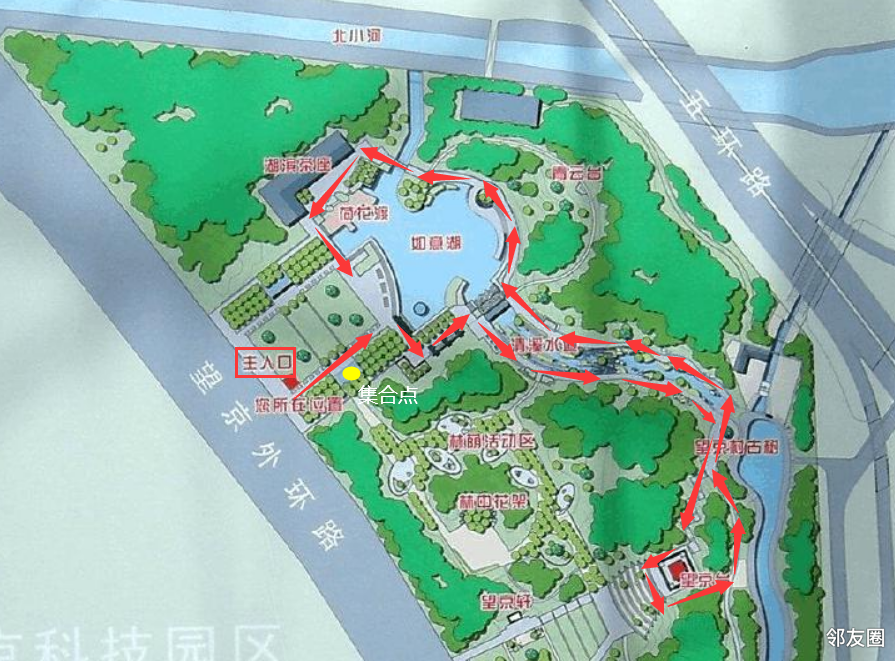 活动介绍:健步走路线:沿湖和小溪健步走,到望京村古树,上望京塔,返回穿过小木桥,沿小溪返回到荷花渡。全城大概1.5公里,需要20-30分钟