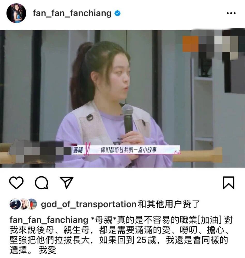 在节目《妈妈你真好看》上,钟嘉晴还对范姜表示感激,谢谢她牺牲了整个青春岁月,尽心尽力照顾两个没有血缘关系的孩子。