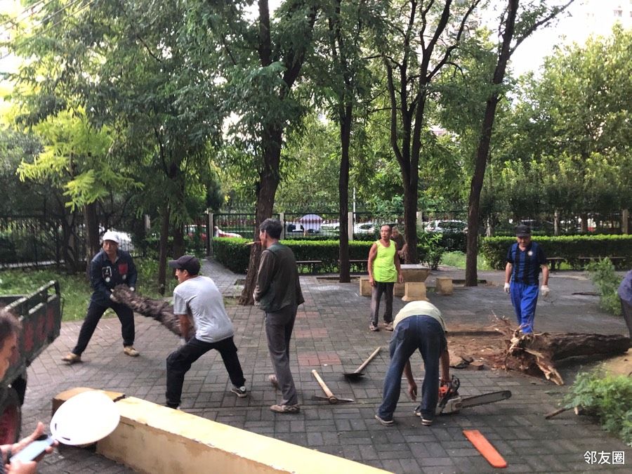 二十分钟过后,物业及工作人员抵达现场开始作业,将该树锯断,目前工作人员仍在清理现场,很快就会恢复正常
