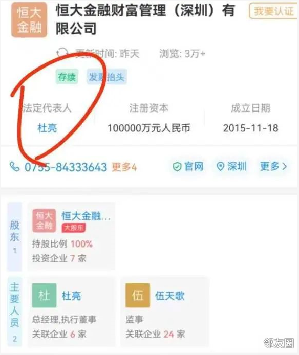 而从网上资料可以查到,杜亮正是恒大金融财富管理公司的法定代表人。