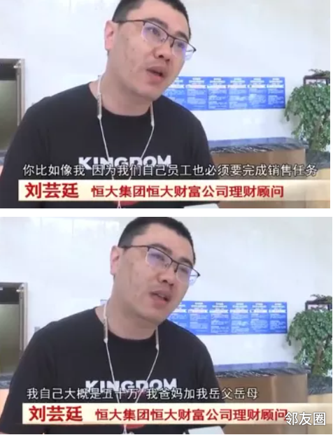 所谓的理财顾问,不光要拉客户下水,也要拉自己和家人下水,去买恒大的理财产品。