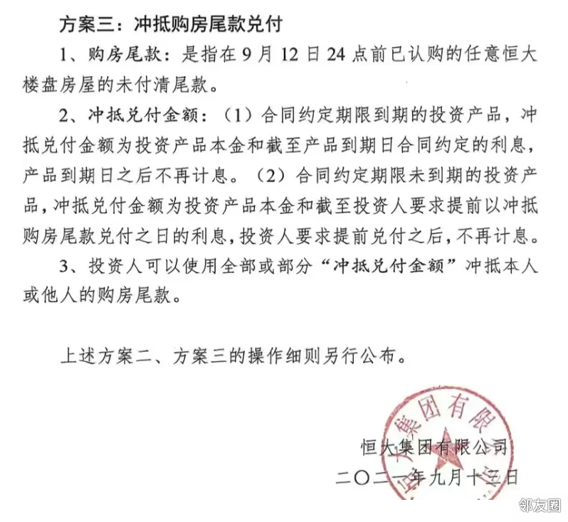 在巨大压力下,恒大总算拿出三种兑付方案: