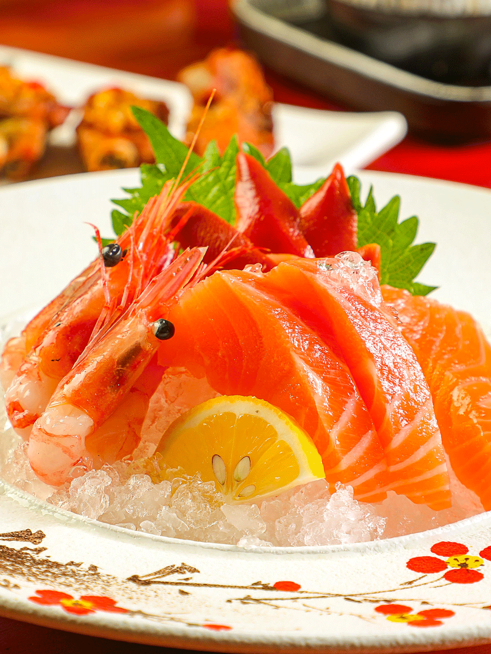 - 菜单内容 -【刺身拼盘(每人限1份)】蓝鳍金枪鱼1片、北极贝2片、甜虾2只