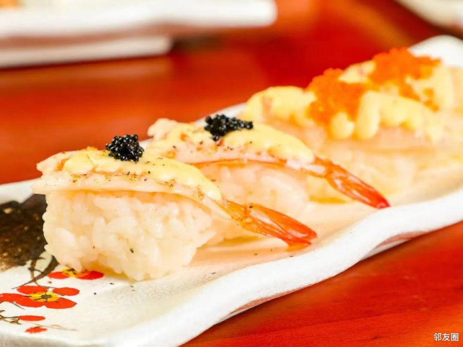 火炙类:加吉鱼、蟹棒、牡丹虾、三文鱼