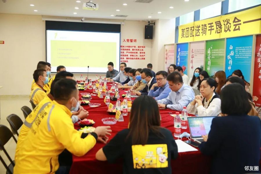 9月28日,望京街道联合美团举办美团配送骑手恳谈会,旨在通过面对面交流谈心的方式,倾听骑手在工作保障、体验提升、职业发展、生活关怀等各个方面的心声,帮助骑手解决实际问题,保障骑手正当权益。北京市委网信办党建办副主任王兆军,望京街道工委副书记赵轶炜,美团党委书记、副总裁陈荣凯以及党员骑手代表等三十余人参加会议。