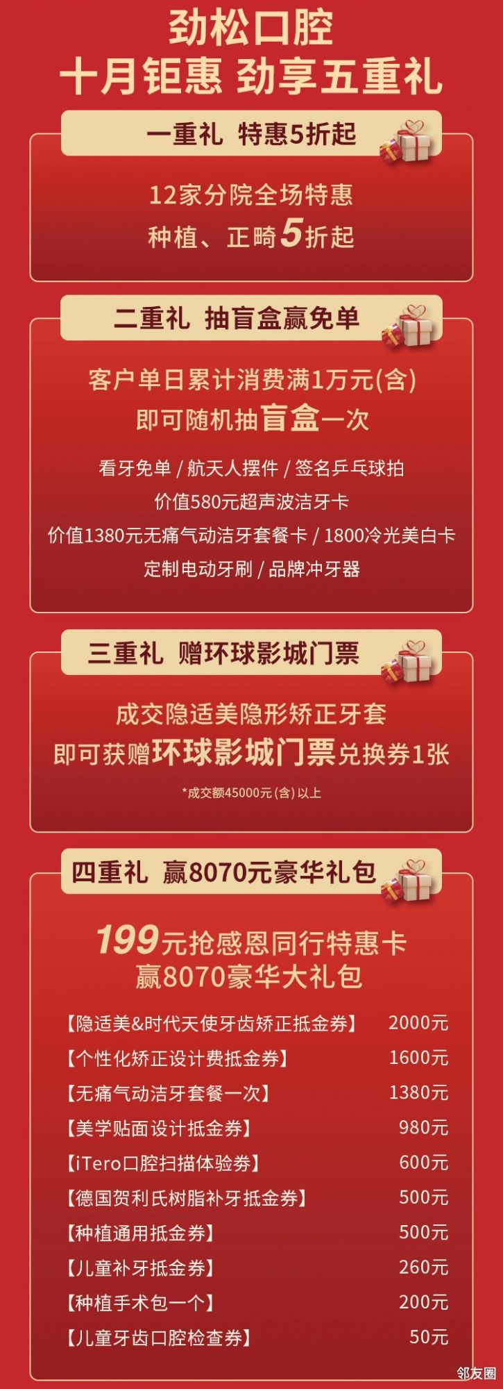 包括各种矫正、种植、补牙抵金券