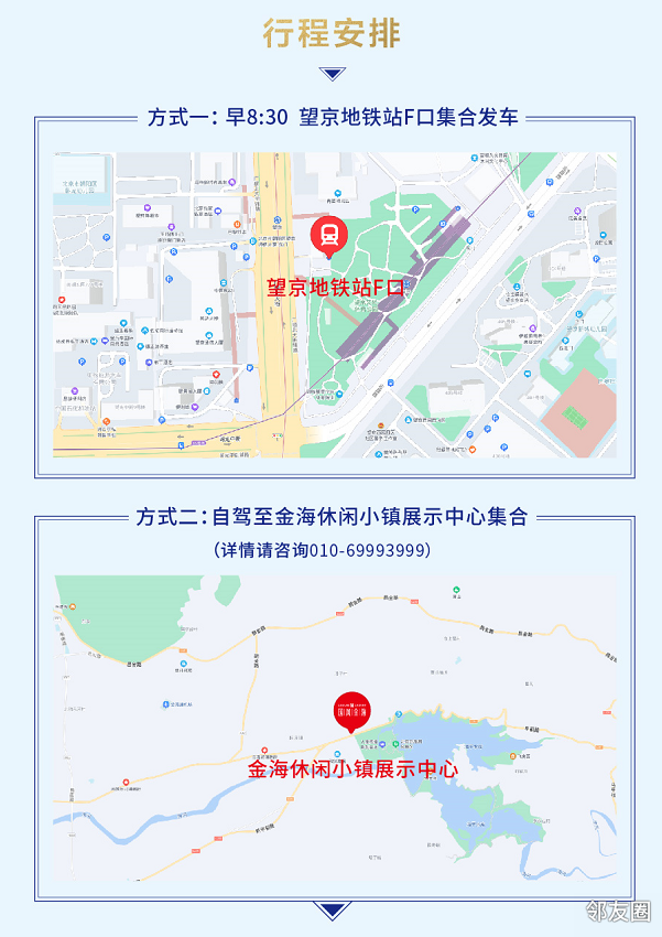 方式二:自驾至金海休闲小镇展示中心集合【咨询电话】010-69993999