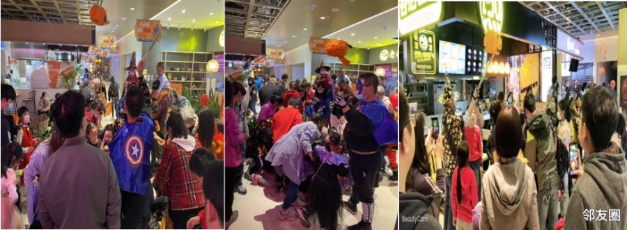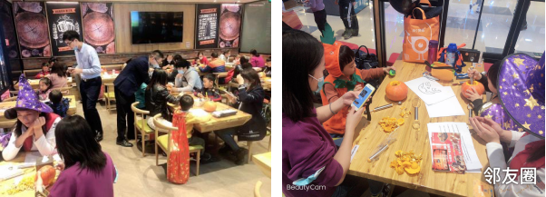 小朋友们打扮成各种可爱的鬼怪,“不给糖,就捣蛋!不给糖,就捣蛋!”孩子们拿着讨糖袋喊着口号,在街区内向商户讨糖,也可以参与糖果皮纳塔活动。