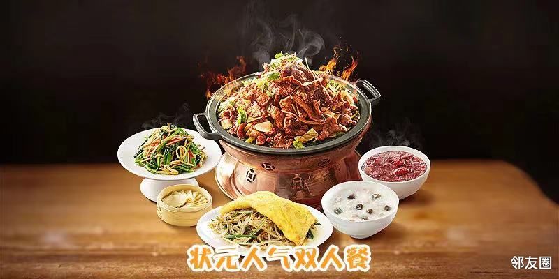 状元人气双人餐69元;招牌双人餐79元;招牌4人餐148元★ 状元人气双人餐 ★ 【招牌菜】★ 状元炒烤肉(配自制开口笑烧饼) 1份 49元