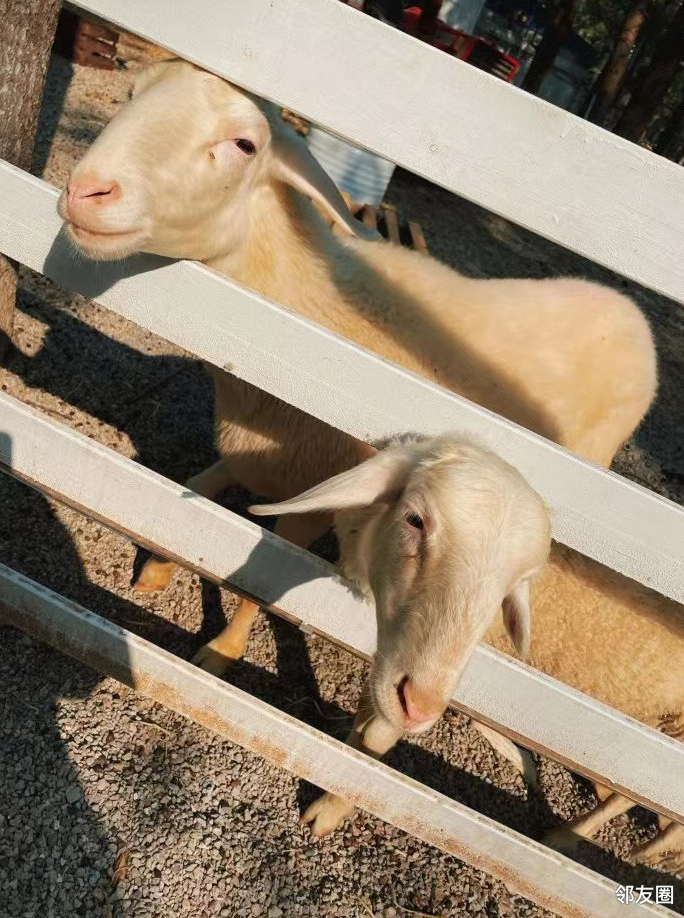 13.绵羊:小绵羊胖乎乎,白生生,蜷曲的毛,像一团团绒球贴在身上。
