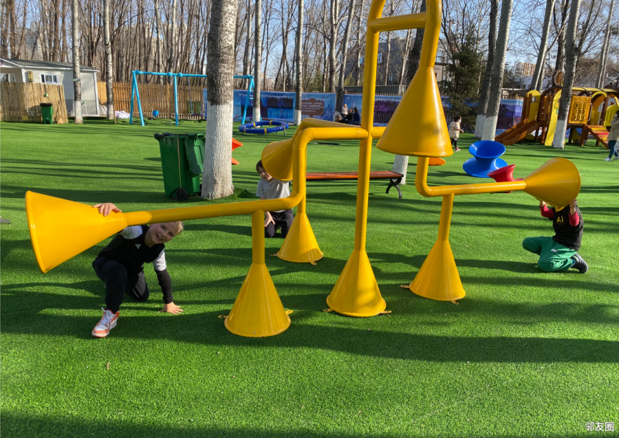 登上MoMo坚果攀爬,从攀爬网中穿过,由滑梯缓慢滑下,来这颗坚果中一探究竟吧。MoMo传声筒保持通话请站在传声筒的两边聊聊天。