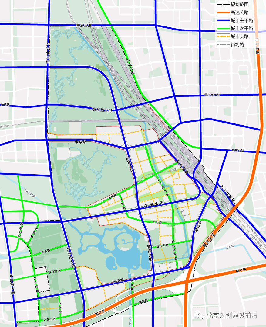 兴华大街主轴线:延续"大兴脊柱",沿线布局城市重点功能