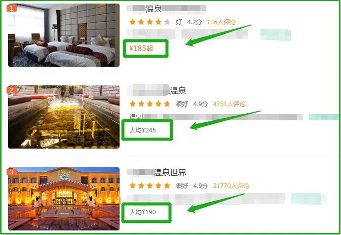 对比X团,价钱从180元~200元不等