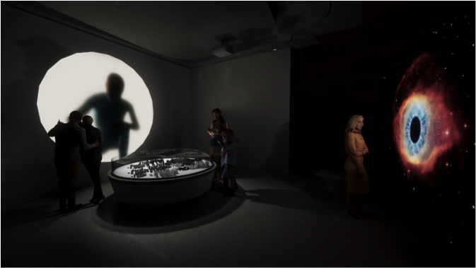 全息投影融合打造沉浸式光影空间,在虚幻与真实的交替中,感受宇宙的浩瀚,万物的渺小,感受引擎色彩演绎的精彩世界。
