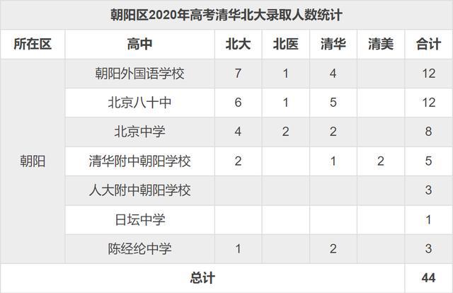 在这份非官方的数据中,首次出现在榜单中的北京中学高考首次出击就排名第12,朝阳区第一,紧接在后面的是朝阳外国语,八十中学,然后就是清朝,人朝,陈经纶,这也间接反映出了新高考形势下朝阳区高中基本排行。 这并不是官方的数据,但是因为官方一直不可能有平均分排行,而且大体上和清北人数互相印证,再加上几个新排进去的学校和学校近期成绩基本趋势吻合,所以还是有一定参考价值的。