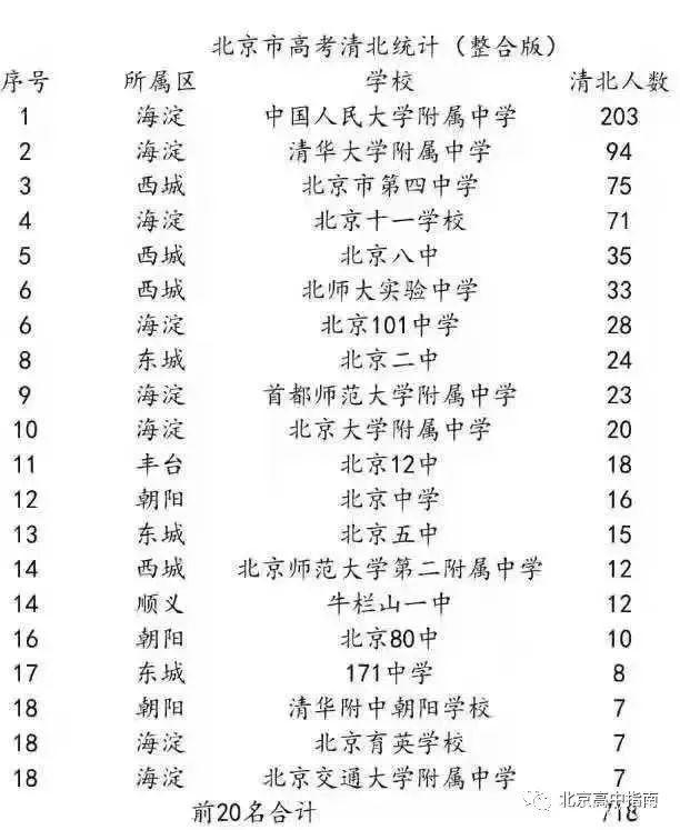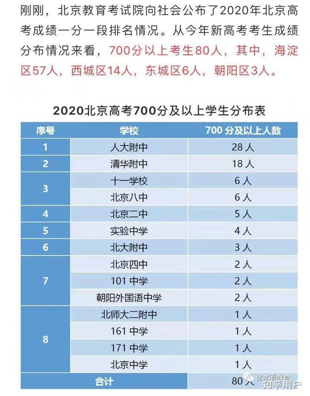 也许有人说这些都是民间数据,实际上一些官方数据也不断增强民间数据的可信度,2020年北京考试院的一分一段学校排名也基本反映了北中在朝阳和北京的实力。