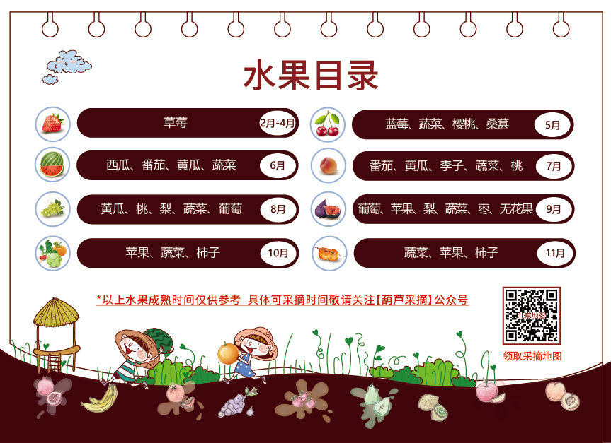 2、护照效期:即日起至2022年12月31日,具体果园信息、采摘时间请关注“葫芦采摘”公众号内【水果快报】,以【采摘预约】开放信息为准。