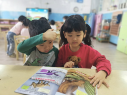 把最后的安静留给正在阅读的孩子。在区角中,我们提供符合孩子年龄的各类书籍,孩子们则饶有兴致的探索不同环境下不同物种呈现的差异性,阅读开启了孩子慧眼看世界的新旅程。