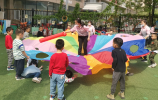 恰如今日,阳光正好,孩子们和老师利用彩虹伞开展了有趣的“打地鼠”游戏,孩子们欢乐的笑声不绝于耳。