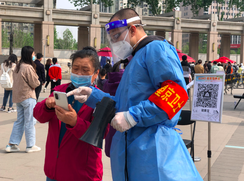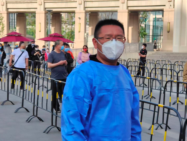 就在袁乾铭提供志愿服务的同时,望京国际人才志愿服务队的杨超、任波、周怡等7名成员还奋战在望京体育公园和首开广场两个检测点。5月10日下午2点30分,志愿者杨超作为登记人员已经奋战了两班了,他化身“大白”,每工作2小时再“换岗”,到了中午,他的脑门和手心已经开始淌汗,但一想到自己每一班会为100人录入信息,他就特别有成就感。杨超还是望京肯跑团团长,他和一群志同道合的跑友常年坚持锻炼,在他的带动下,肯跑团团友也加入到志愿者队伍中,“跑步的人都有凝聚力,也比较阳光,愿意帮助他人。”杨超说。