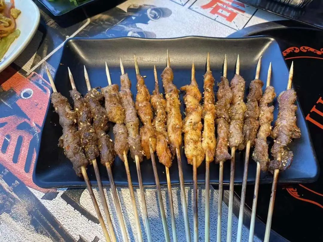 滋啦冒油的掌中宝,飘着香气的牛肉串