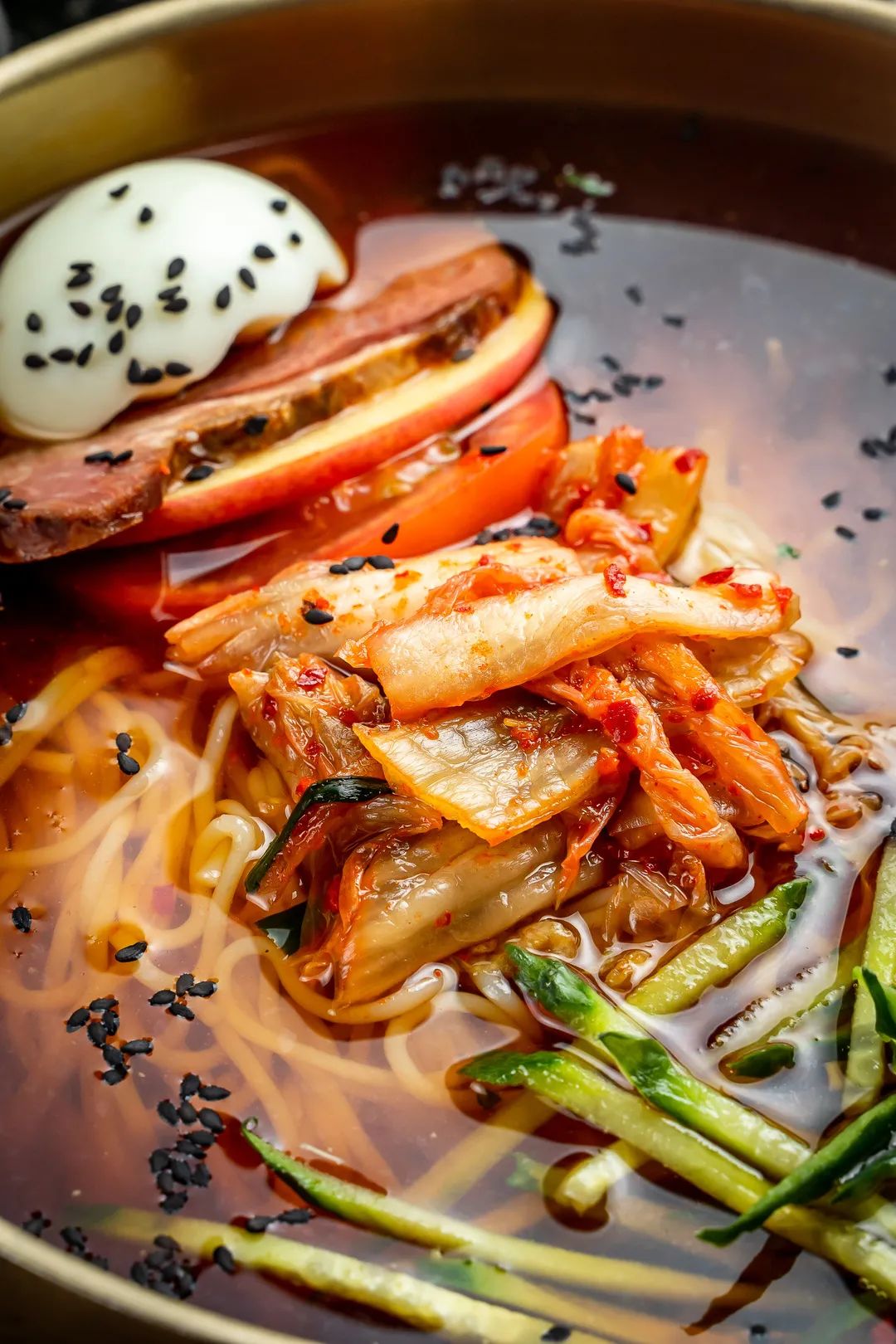 配上自家腌制的泡菜、黄瓜丝、西红柿片