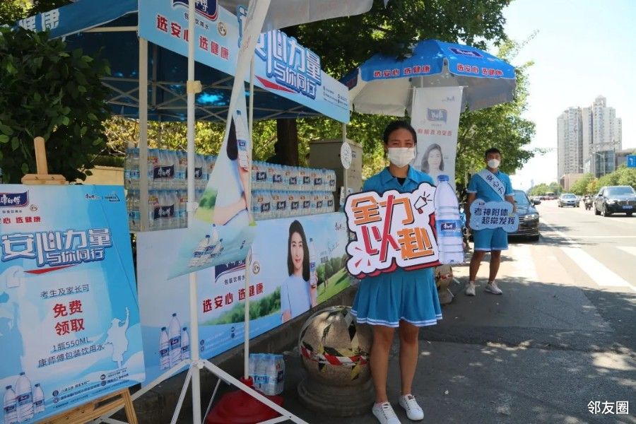 康师傅控股北京分公司为考生、家长提供免费的矿泉水、凉棚等服务。