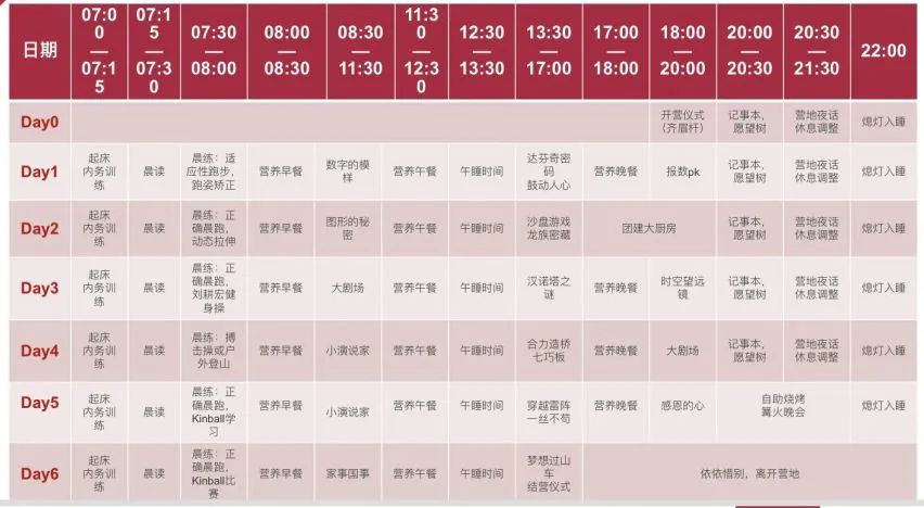 以体验式活动为形式,通过团队组建、任务达成等竞赛方式,提升营员的团队协作性、人际沟通能力、组织逻辑性、荣誉感和目标感。