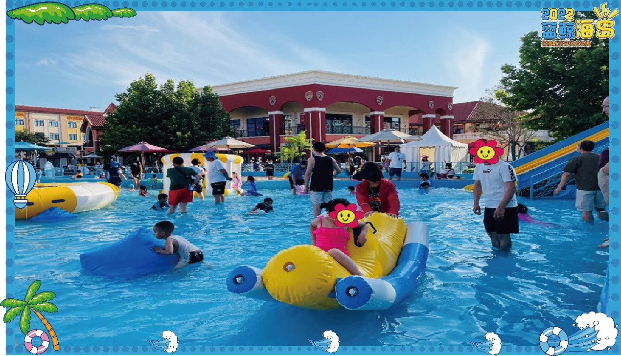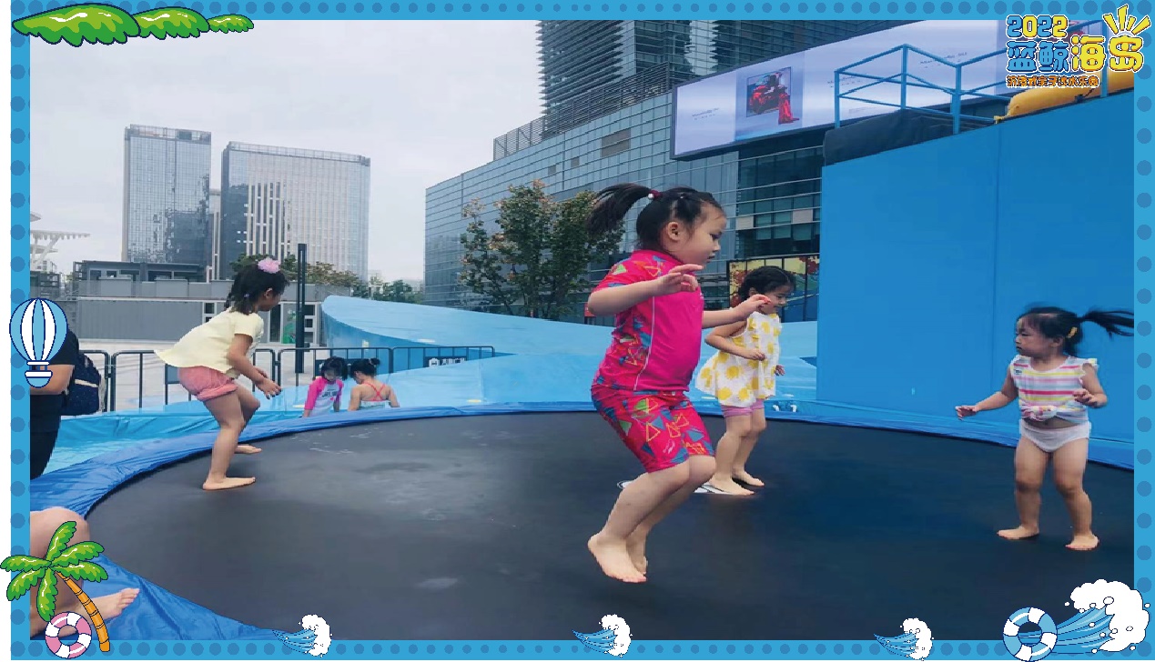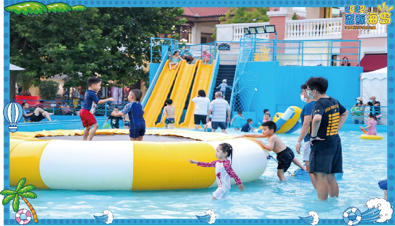 水上蹦床、迷你海岛攀爬、海浪滚轮,多彩小泳圈……