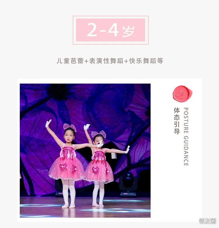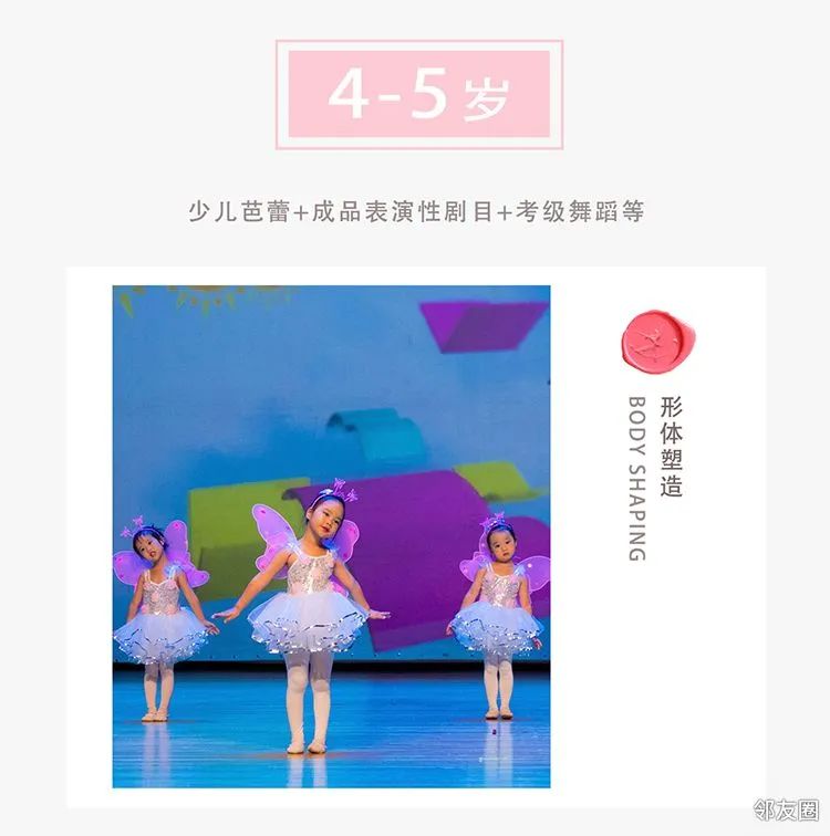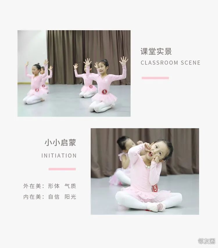 芭蕾舞主要训练孩子:后背直立,腿夹紧伸直等身体素质练习。中国舞主要包括考级舞蹈、本机构研发的针对形体,表现力,节奏感,自信心方面的舞蹈、以及优秀的成品舞剧目等,通过芭蕾加中国舞的课程学习让孩子更有气质,在同龄孩子中出类拔萃。