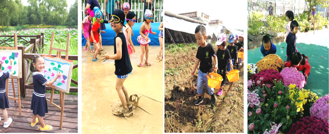 孩子们在自然环境中,可以登高、在草地上奔跑、在田地里玩泥巴,每天都可以有不同的生命体验。