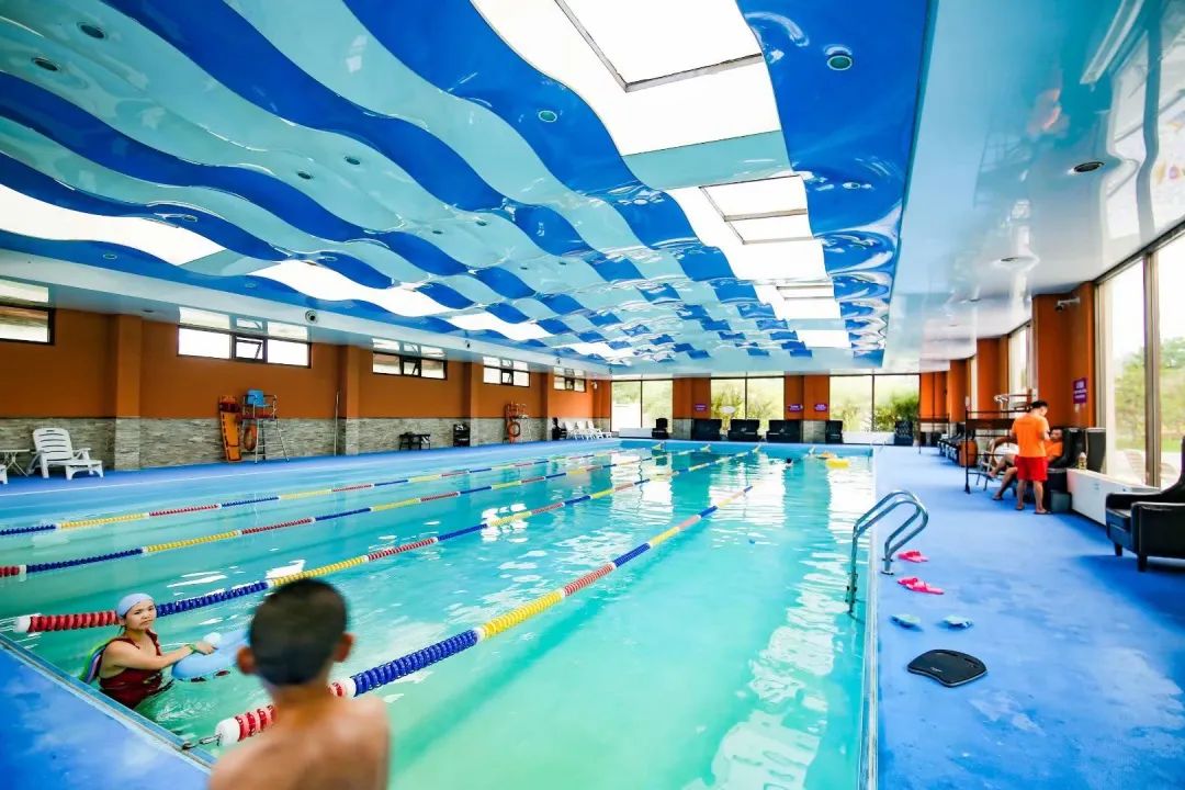 还有大型游泳池蓝色波浪设计,仿佛