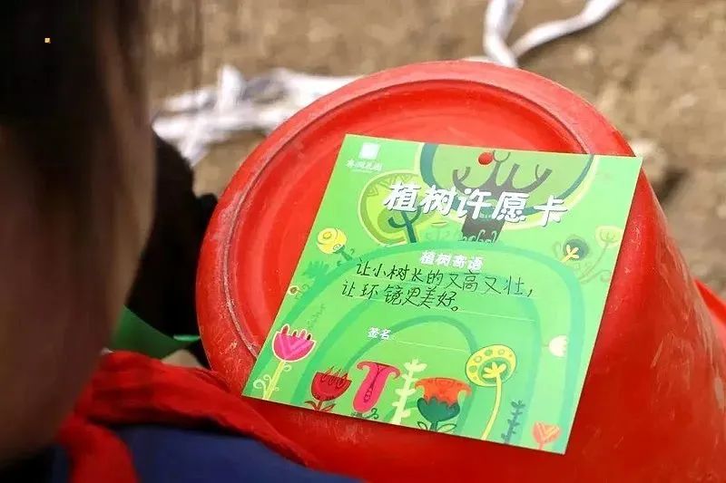 当种下一颗树苗后,我们将赋予一份特别的仪式,孩子们写下自己的美好心愿挂在专属树苗上,会伴随着小树一起成长。